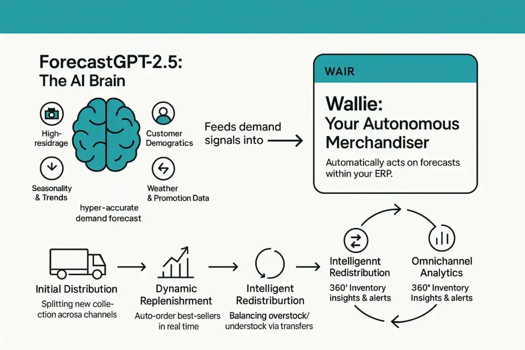 An accurate forecast is only valuable if you can act on it effectively. This is where AI agents like Wallie, our digital merchandising employee, transform your operations. Wallie takes the predictive insights from ForecastGPT-2.5 and translates them into profitable, real time merchandising decisions, all while seamlessly integrating with your existing ERP systems.